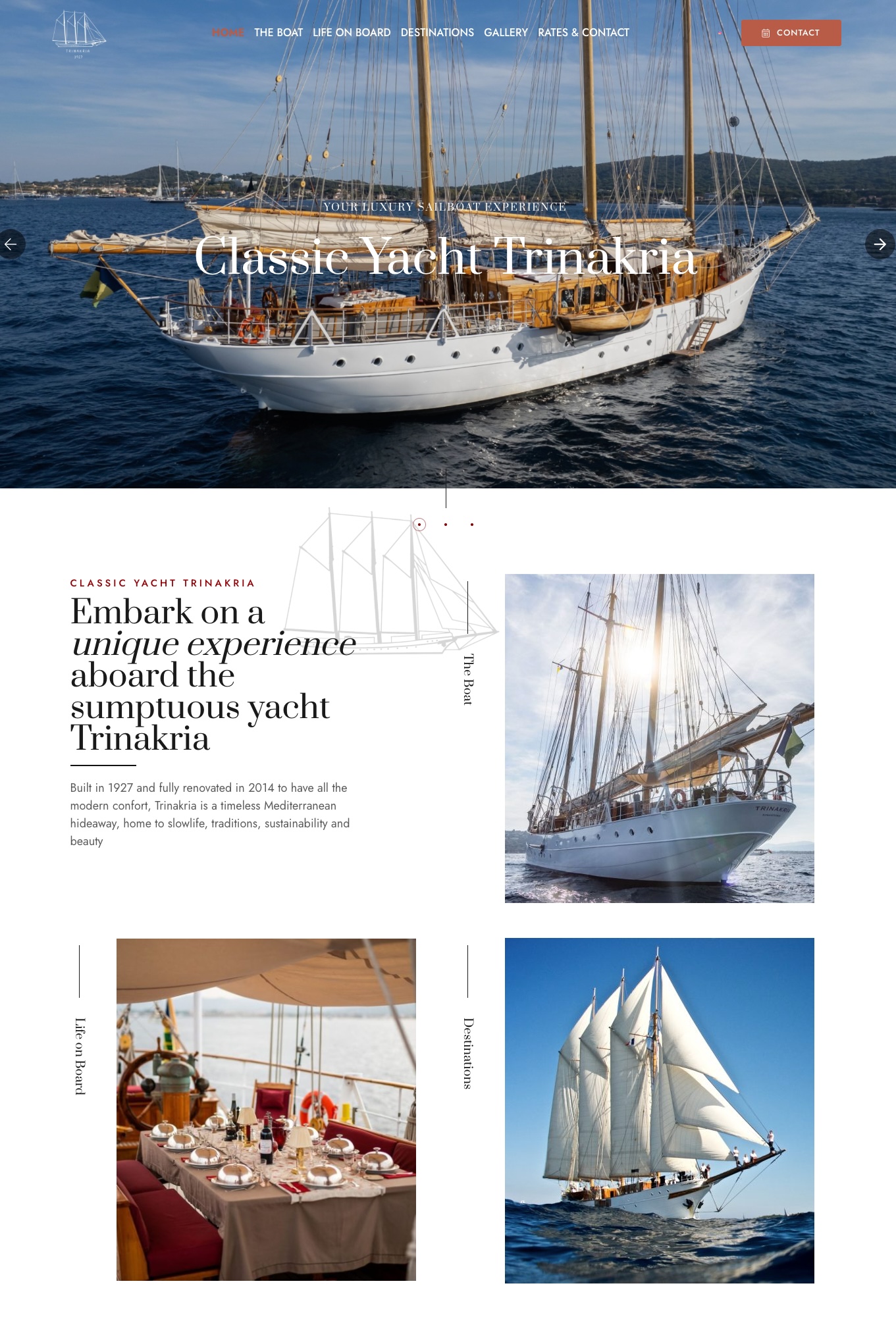 The Trinakria website reflects the prestige and sophistication of this exceptional boat. Every detail has been designed to highlight the exclusivity of the service and immerse visitors in the unique world of this extraordinary cruise.