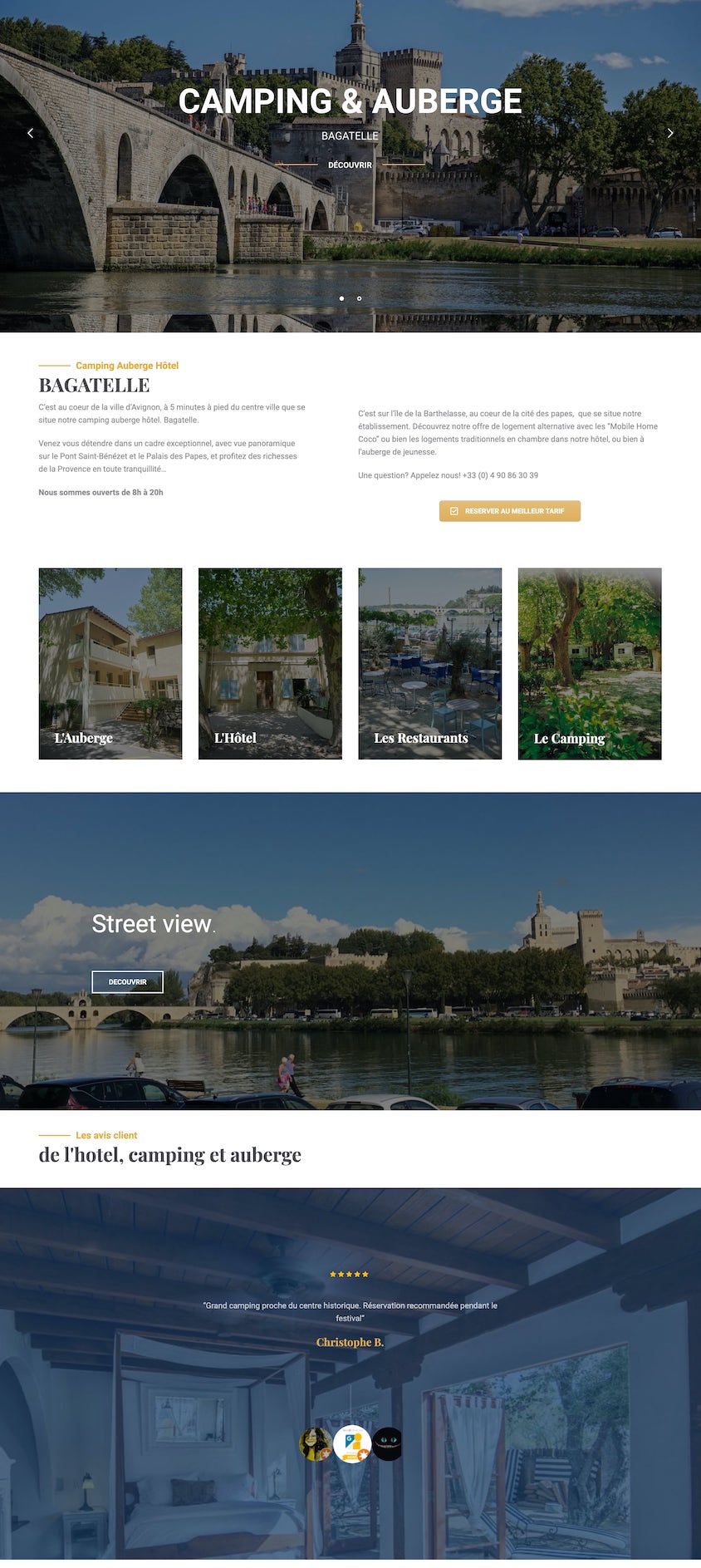 La Bagatelle è un complesso che comprende un campeggio, un ostello, un hotel e un ristorante ad Avignone. Dispone di 4 unità abitative vicino al Rodano. Perfetto per viaggi di gruppo, in famiglia o con gli amici. Il sito web del campeggio Bagatelle offre sistemazioni in tenda, bungalow e un ostello della gioventù.