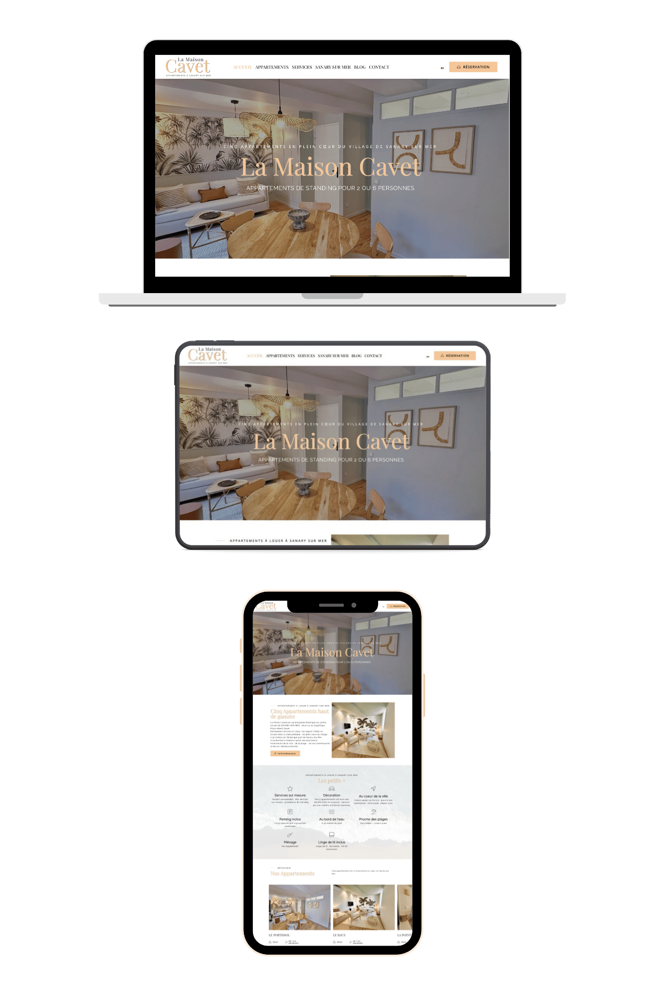 Le design évoque la convivialité et le confort, avec une mise en page épurée et responsive, fidèle à l’esprit d’une maison de vacances haut de gamme.